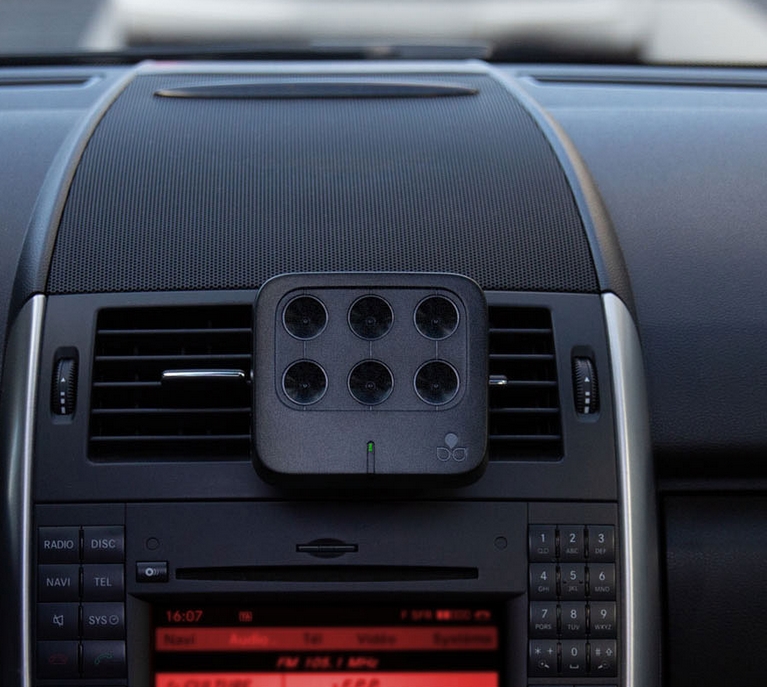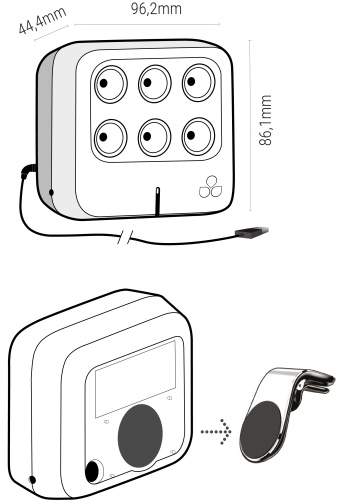 Maintenance-free and no filters to change, the device attaches to the ventilation grid with a support provided and plugs into the USB port of your vehicle.