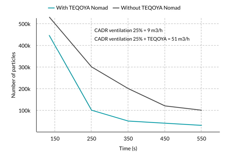 TEQOYA Nomad is also for personal use. Suitable for travel, it is easily transportable and usable wherever you are with the optional Indoor Kit accessory, creating a bubble of pure air around you.